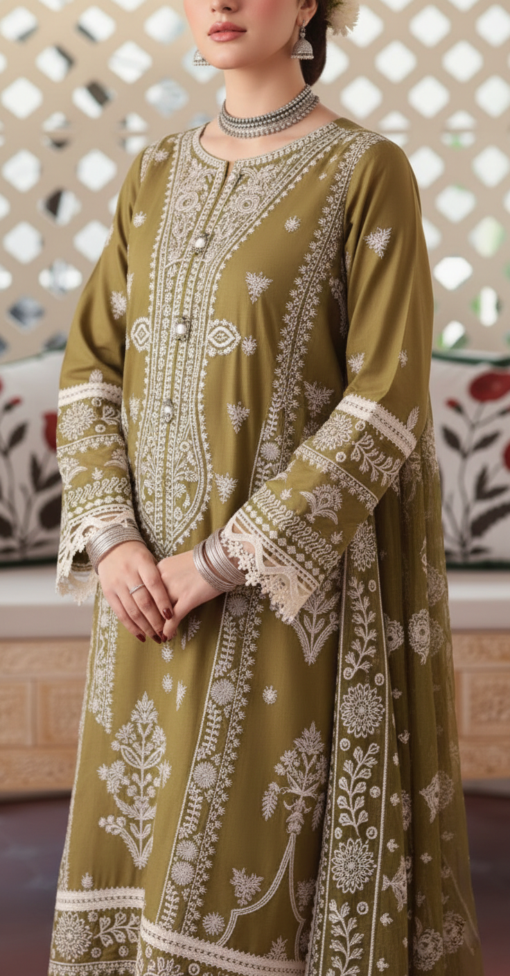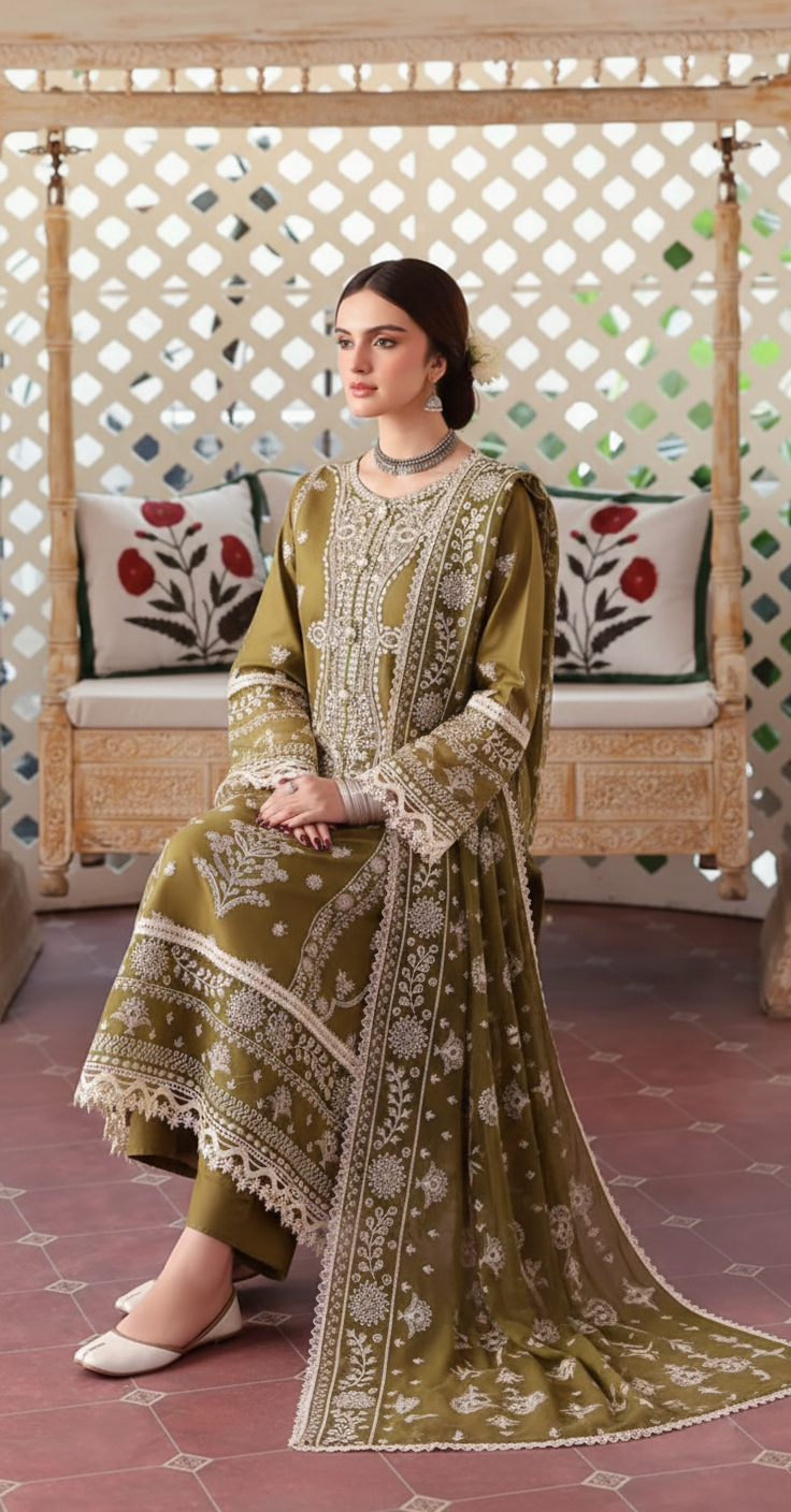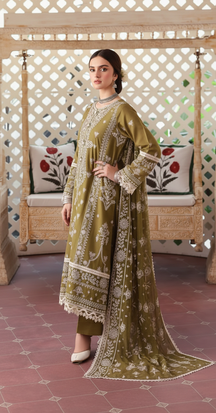 This premium 3-piece suit is designed with fine embroidery details that add sophistication and charm to your seasonal wardrobe. Perfect for summer gatherings, casual events, and festive occasions.